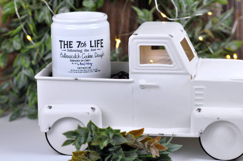 6.5oz "Butterscotch Cookie Dough" scented soy candle in a Farmhouse style jar.
